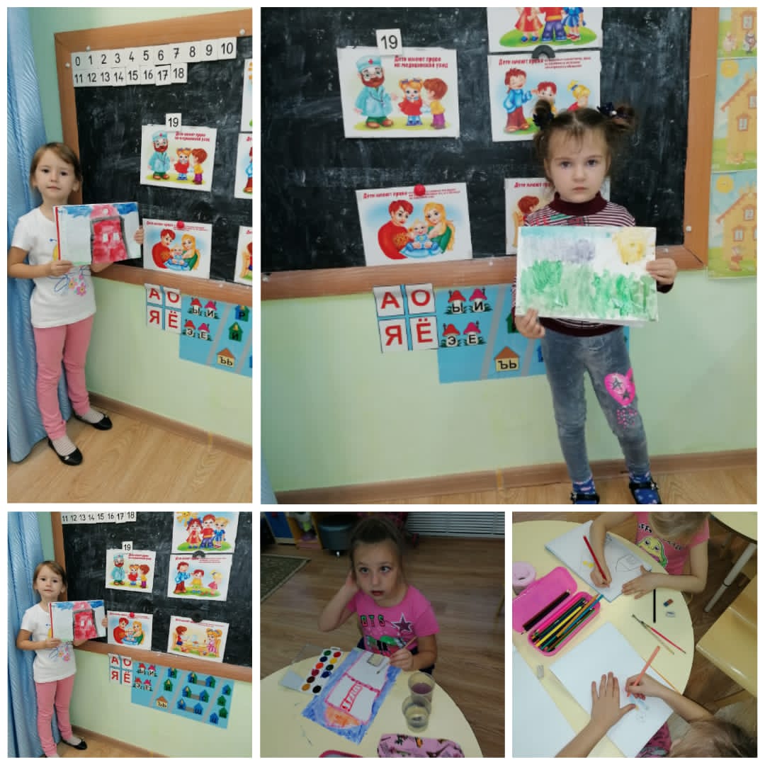 -ребята рассматривали тематические картинки и обсуждали увиденное;дети высказывали своё мнение, так как - это тоже одно из прав детей на «выражение своего мнения»; Дети с интересом участвовали в непосредственной образовательной деятельности, беседах, в художественном творчестве, ролевых играх, в ходе которых они знакомились с основными правами и обязанностями – правом на жизнь и имя, образование и отдых, медицинскую помощь и правильное питание, на любовь и заботу со стороны взрослых.посвящается».Еще изготовлены были буклеты и памятки для родителей по теме :"права и обязанности ребенка"
